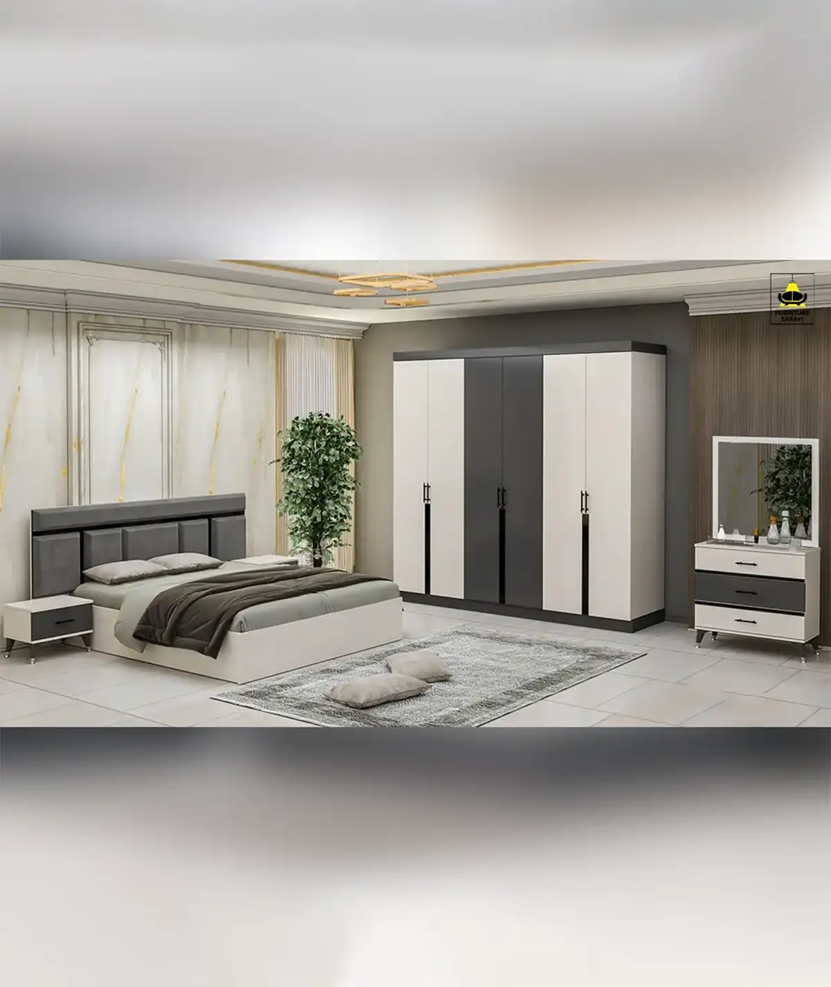 1 Queen Bed Size 1 Wardrobe 1 Dresser Two (2) Side Drawers